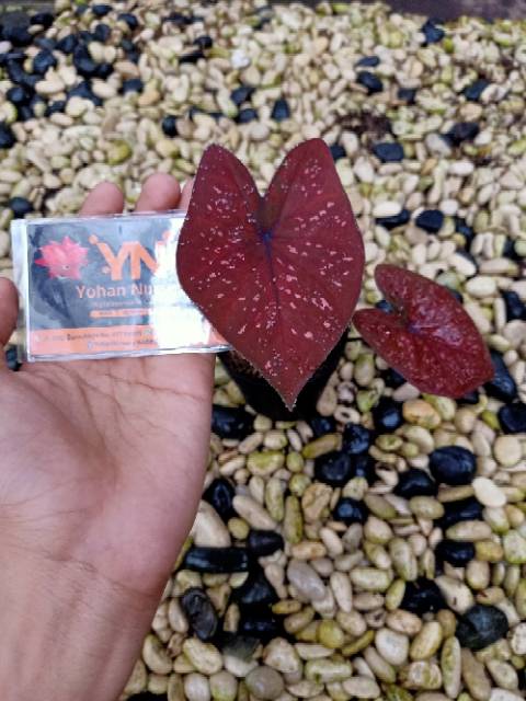 Tanaman hias keladi ini mempunyai bentuk yang cantik dan warna eksotis.