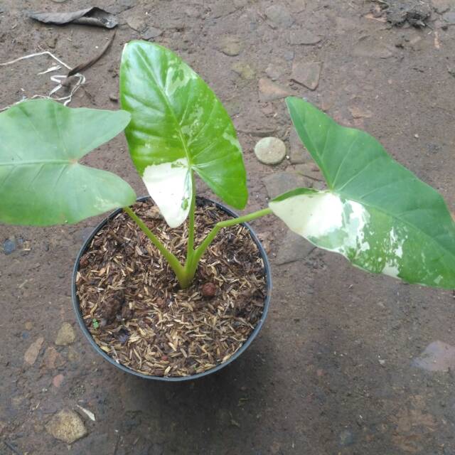 Keladi variegata (alocasia macrorrhiza variegata) adalah keladi hias yang dihasilkan dari penyimpangan gen dari keladi biasa. Beberapa jenis memiliki satu warna. Keladi jenis ini sering ddimanfaatkan sebagai makanan atau. Tanaman monokotil berbunga majemuk tongkol berseludang.